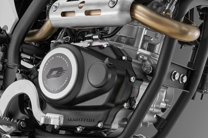 U QJMOTOR nemusíte za klíčové doplňky připlácet. SRT 125 DX je na svá dobrodružství plně připraveno už ve chvíli, kdy s ním opouštíte showroom. Standardní výbava zahrnuje velký čelní plexi štítek, který jezdci poskytuje výbornou aerodynamickou ochranu proti větru a nepřízni počasí. Ať už ukrajujete dálniční kilometry nebo vás zastihne přeháňka, štítek spolehlivě odvádí proud vzduchu mimo vaše tělo. Na ochranu jezdce plynule navazují z výroby montované robustní chrániče rukou (tzv. blástry). Ty v terénu bezpečně ochrání vaše páčky i klouby před odletujícím kamením a větvemi, zatímco při běžném cestování fungují jako nedocenitelný štít proti chladnému vzduchu a dešti. Protože se s tímto strojem počítá i na nezpevněných cestách, nezapomnělo se ani na ochranu motoru. Srdce motocyklu zespodu kryje sice platový ale velmi masivní kryt pod motorem. Tento odolný panel je navržen tak, aby spolehlivě pohltil nárazy od odskakujícího štěrku a zamezil poškození bloku motoru či výfukových svodů při přejíždění terénních zlomů. Celý výčet praktické výbavy pak uzavírá zadní nosič, na který snadno a bezpečně uchytíte zavazadlo pro váš další víkendový výlet.